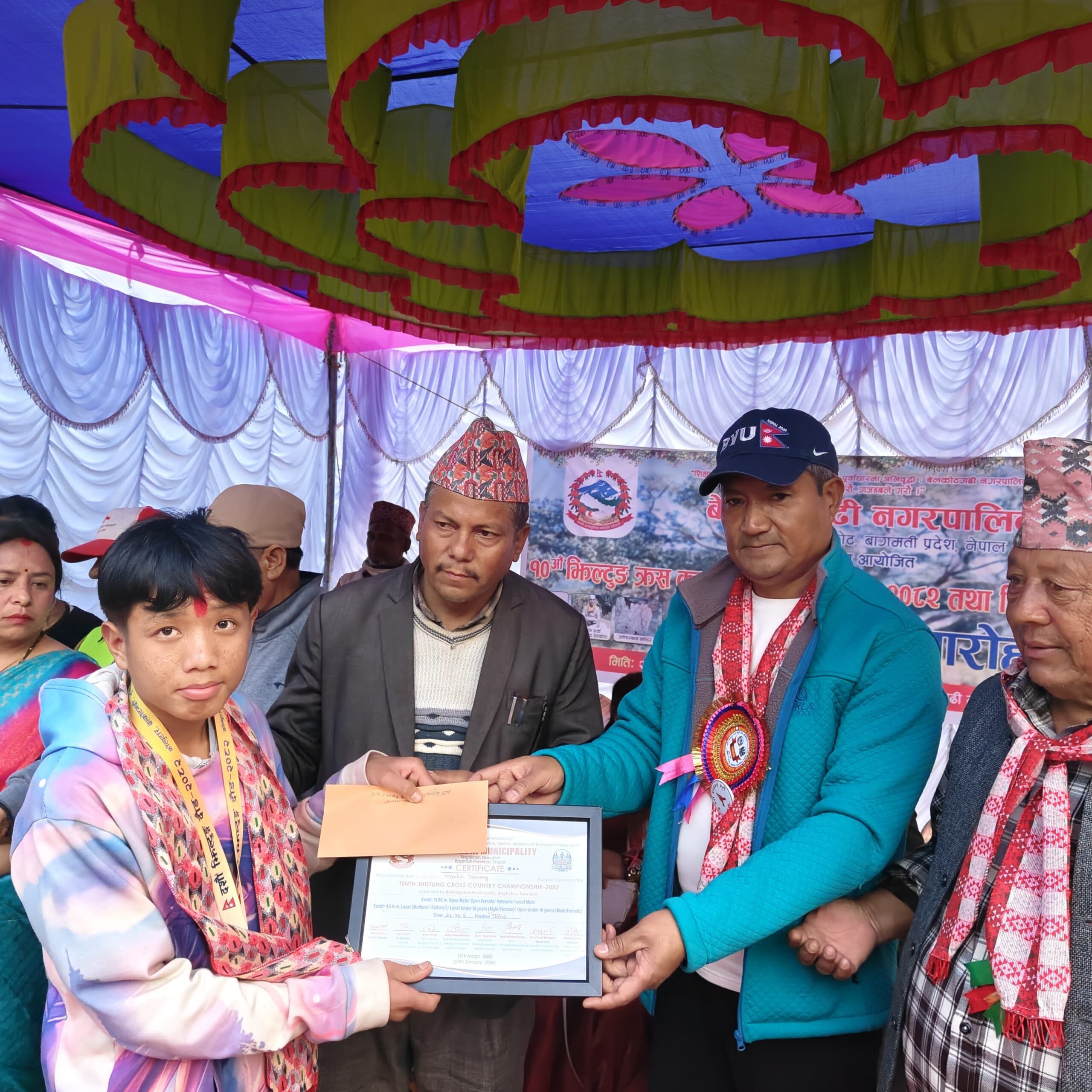 १३ दमशलव ४ किमि पुरुष खुल्लातर्फ त्रिभुवन आर्मी क्लवका अर्जुन वुढा प्रथम भए । ताप्लेजुङका रमेश लिम्वु दोश्रा, रुकुमका ठकेन्द्र शर्मा तृतीय र खोटाङका अविराज राई सानत्वना भए । ४ दशमलव ५ किमि १६ वर्ष मुनीको स्थानीय जुनियर छात्रातर्फ महादेव माविकी शिलसिला कुवर प्रथम भइन् । गणेशस्थान आविकी सकिना तामाङ दोश्रा, माहदेव माविकी राइस्का सुवेदी तृतीय र कामरुदेवीकी मनिष मिजार सान्त्वना भइन् । ४ दशमलव ५ किमि १६ वर्ष मुनीको स्थानीय जुनियर छात्रतर्फ मालिका माविका आशिष तामाङ प्रथम भए ।