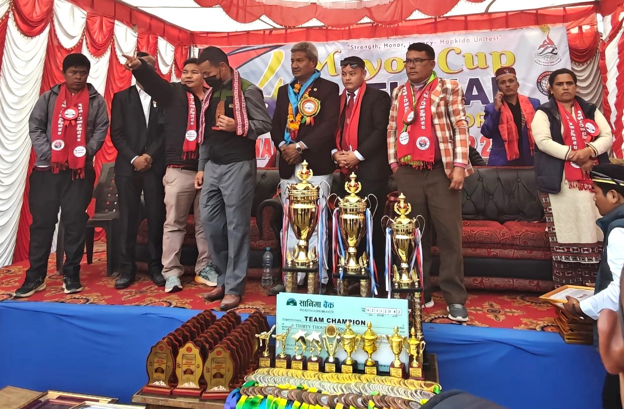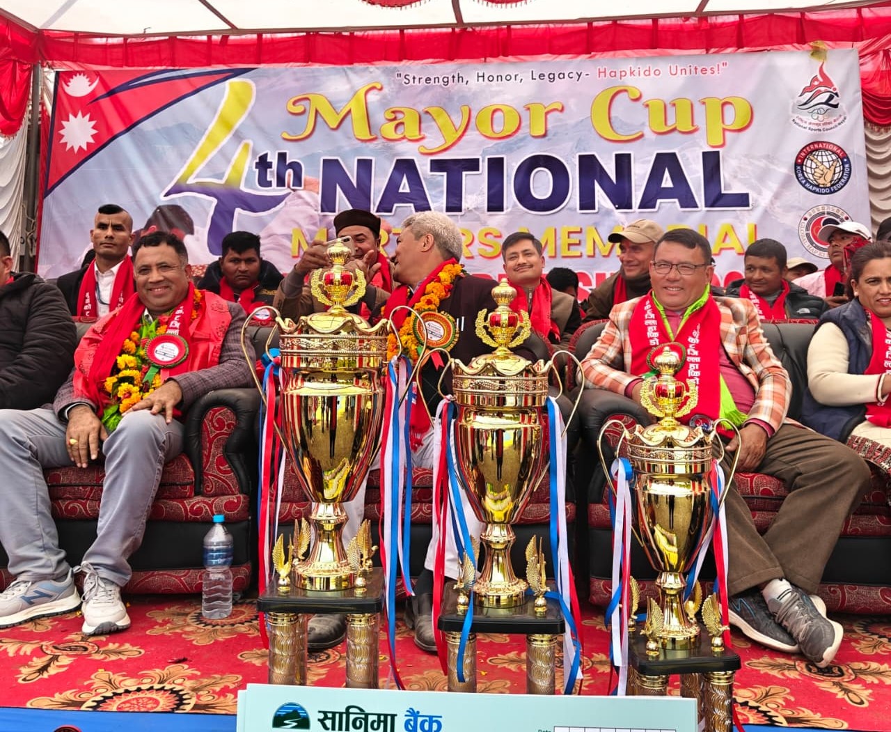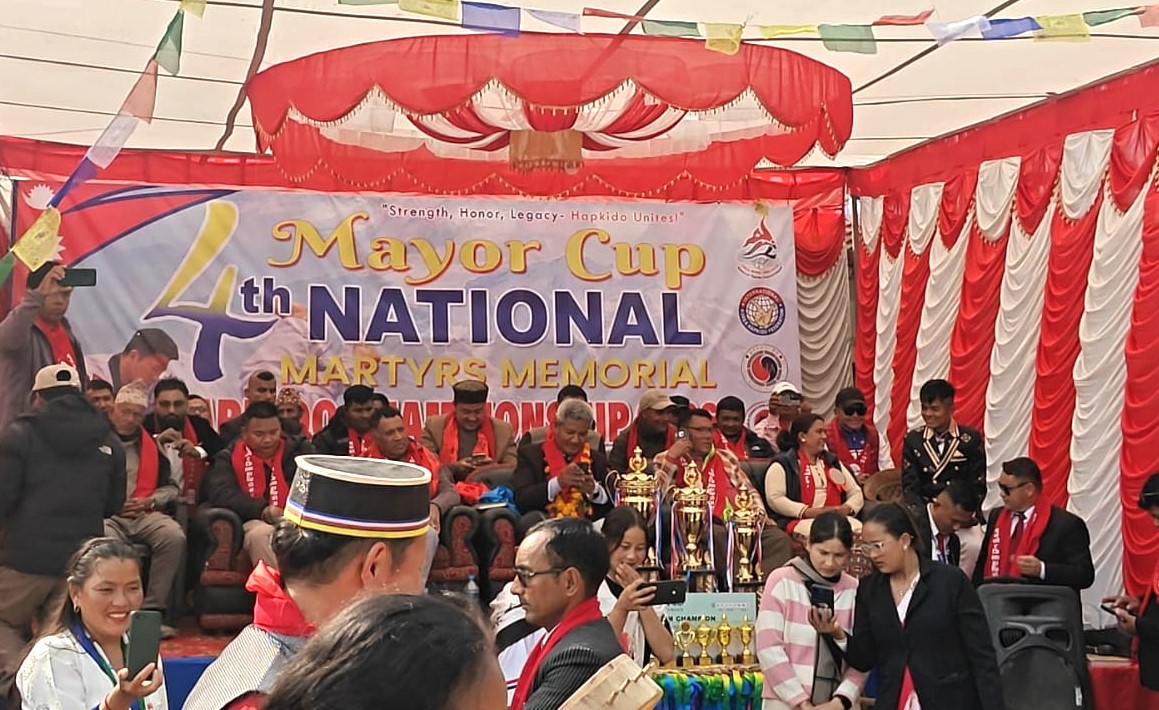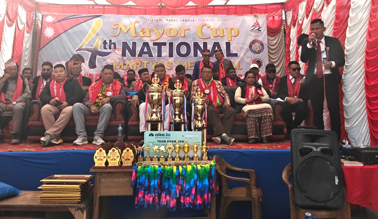 बिदुरः खेल पर्यटनमा जोड दिदै नुवाकोटको वेलकोटगढीमा आयोजित मेयर कप तथा चौथो सहिद स्मृति राष्ट्रिय हाप्किडो प्रतियोगिता सुरु भएको छ । प्रतियोगितामा विजेता तथा उपविजेताले नगद पुरस्कार प्राप्त गर्नेछन् । नुवाकोट जिल्ला हाप्किडो संघको आयोजनामा तथा बेलकोटगढी नगरपालिकाको व्यवस्थापनमा शुक्रवारदेखि सन्चालित दुई दिने “मेयर कप तथा चौथो सहिद स्मृति राष्ट्रिय हाप्किडो प्रतियोगिता–२०८२” को मेयर जगतवहादुर गुरुङले उद्घाटन गरे ।