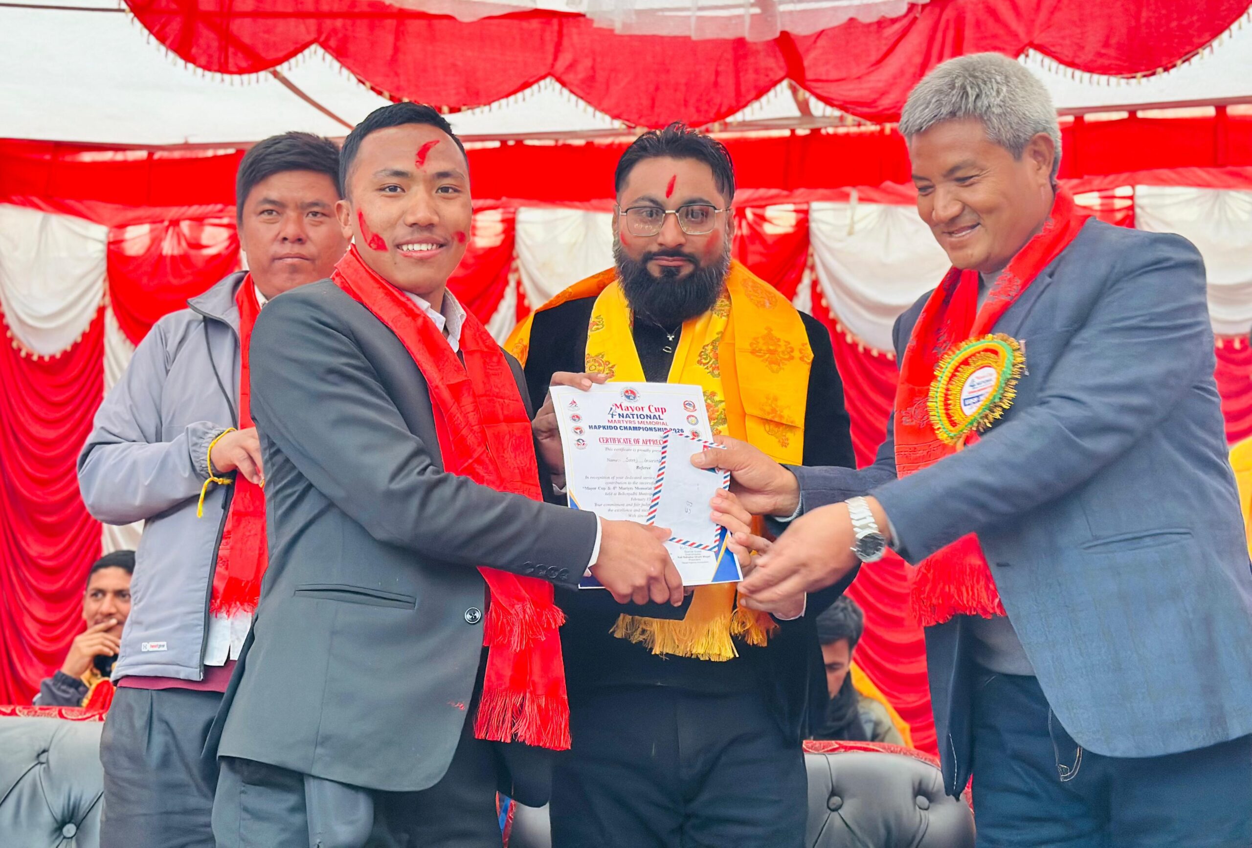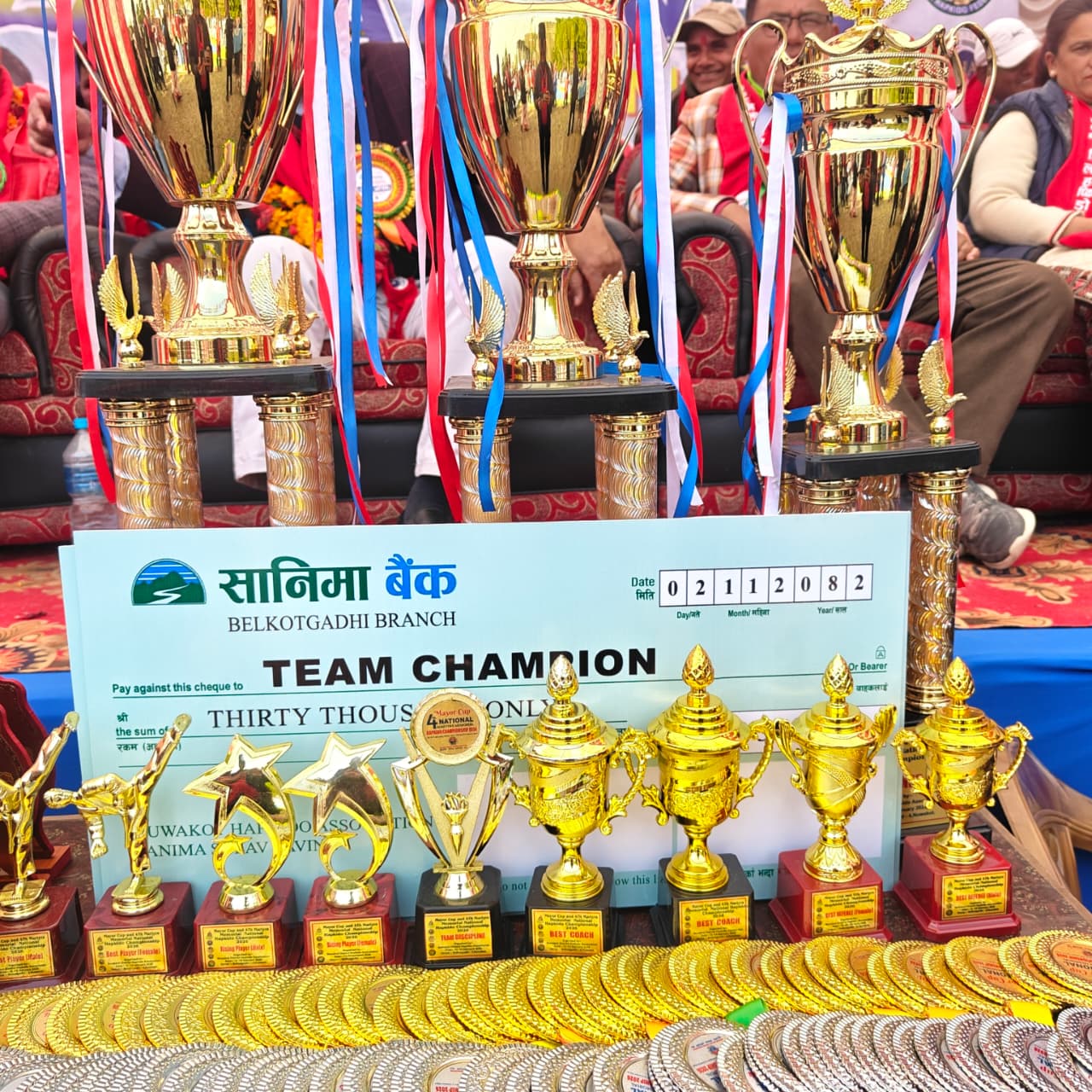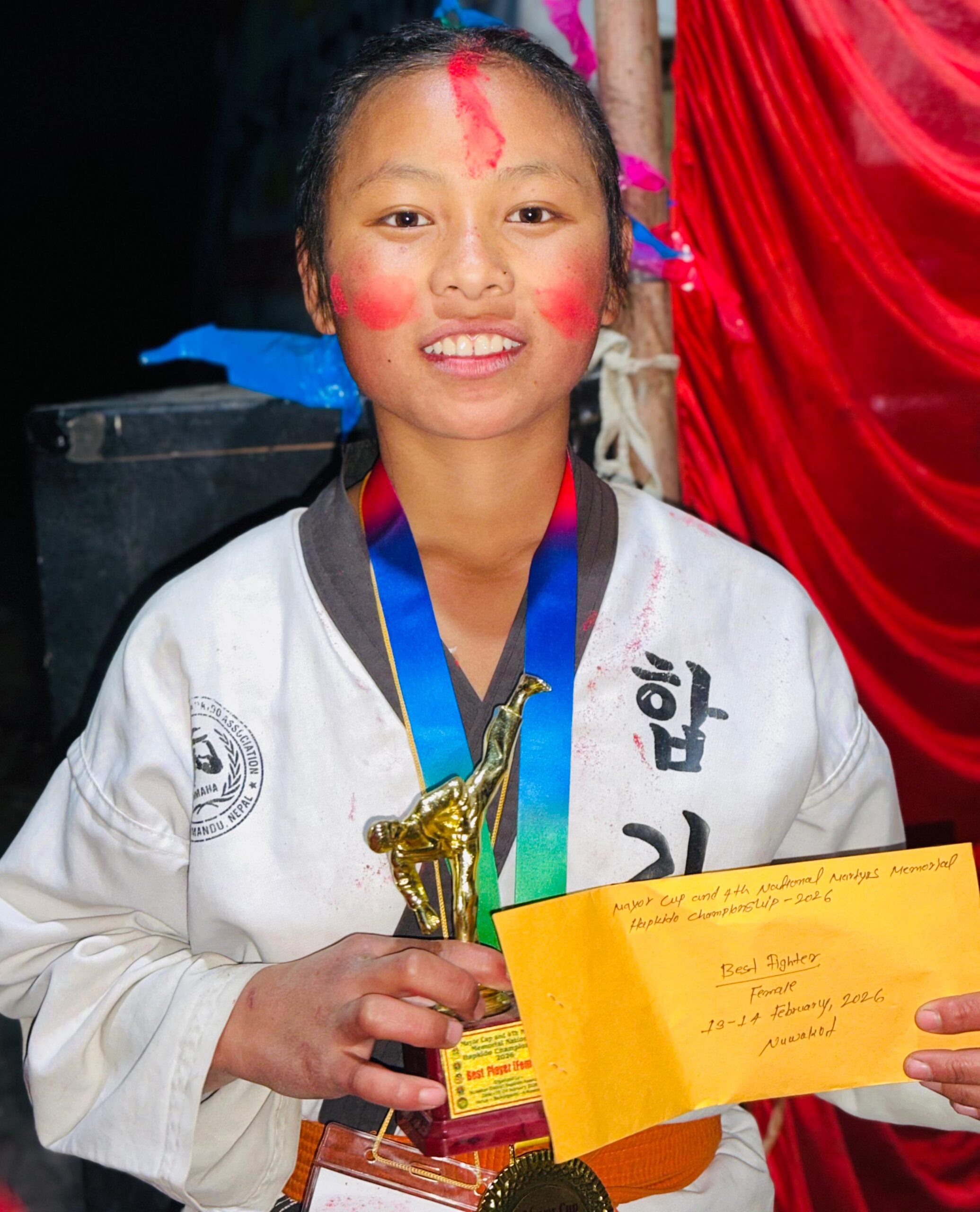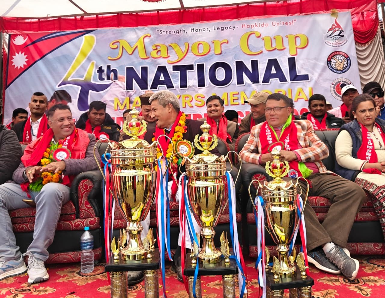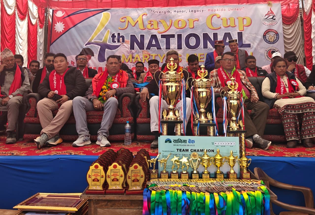 बिदुरः खेल पर्यटनमा जोड दिदै नुवाकोटको वेलकोटगढीमा आयोजित मेयर कप तथा चौथो सहिद स्मृति राष्ट्रिय हाप्किडो प्रतियोगिता सम्पन्न भएको छ । प्रतियोगितामा विजेता तथा उपविजेताले नगद पुरस्कार प्राप्त गरेका छन् । नुवाकोट जिल्ला हाप्किडो संघको आयोजनामा तथा बेलकोटगढी नगरपालिकाको व्यवस्थापनमा सम्पन्न दुई दिने “मेयर कप तथा चौथो सहिद स्मृति राष्ट्रिय हाप्किडो प्रतियोगिता–२०८२” का विजेता तथा उपविजेतालाई मेयर जगतवहादुर गुरुङले पुरस्कार प्रदान गरे ।