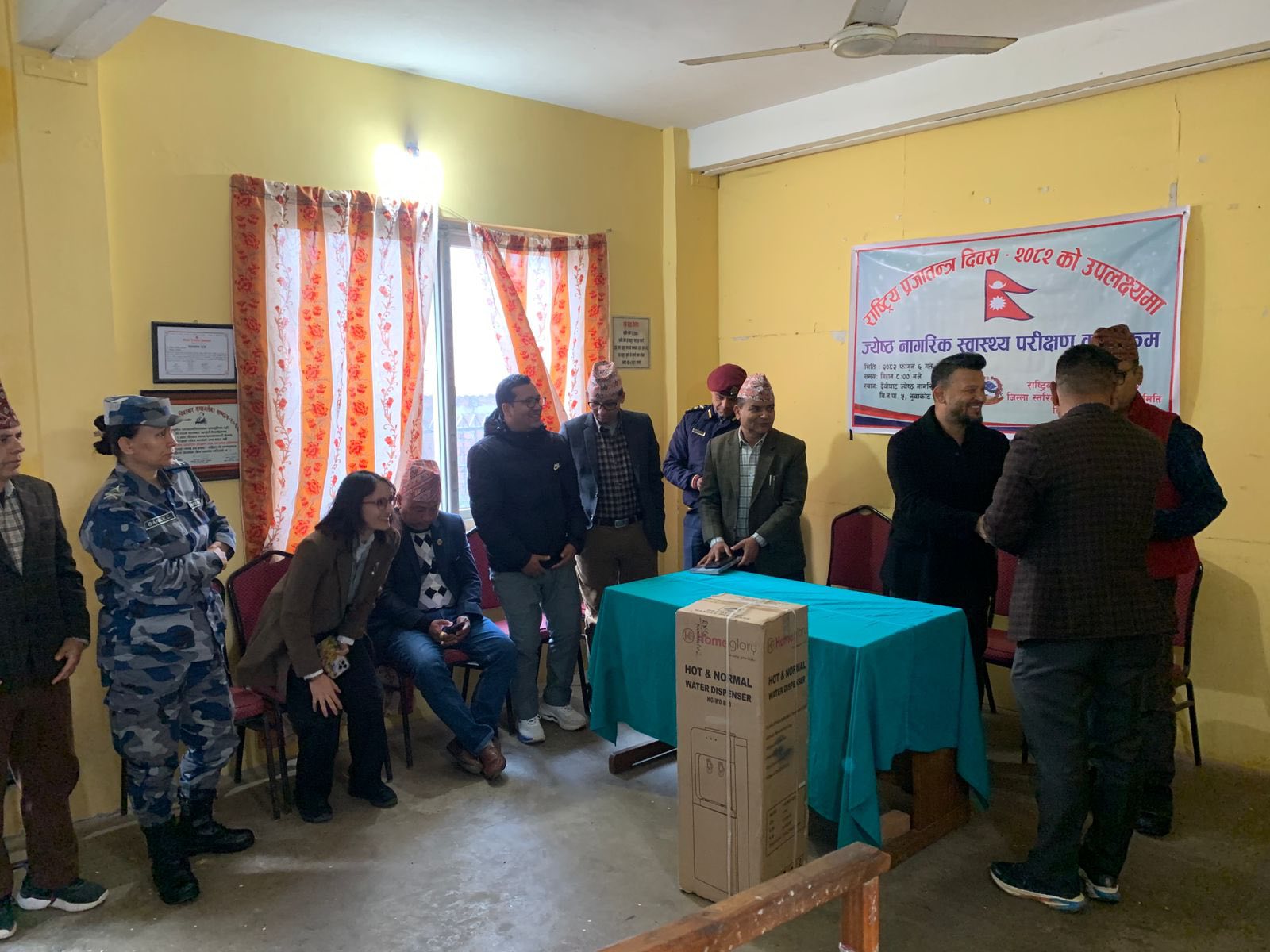 बिदुरः नुवाकोटको देवीघाटमा रहेका वृद्धवृद्धाहरुको स्वास्थ्य परिक्षण गरिएको छ । आवस्यक औषधिका साथै पिउने पानीको लागि उपकरणसमेत प्रदान गरिएको छ । राष्ट्रिय प्रजातन्त्र दिवसको उपलक्ष्यमा विदुर नगरपालिका ५ स्थित देवीघाट ज्येष्ठ नागरिक अध्ययन प्रतिष्ठानमा ‘ज्येष्ठ नागरिक स्वास्थ्य परीक्षण कार्यक्रम’सम्पन्न भएको छ ।