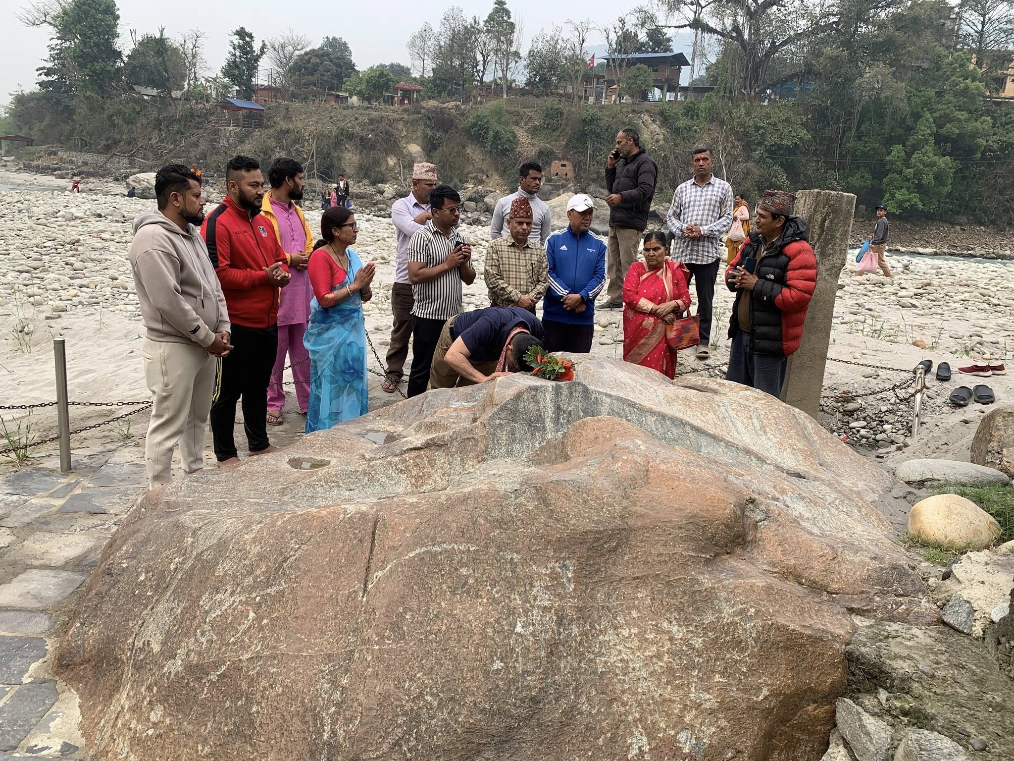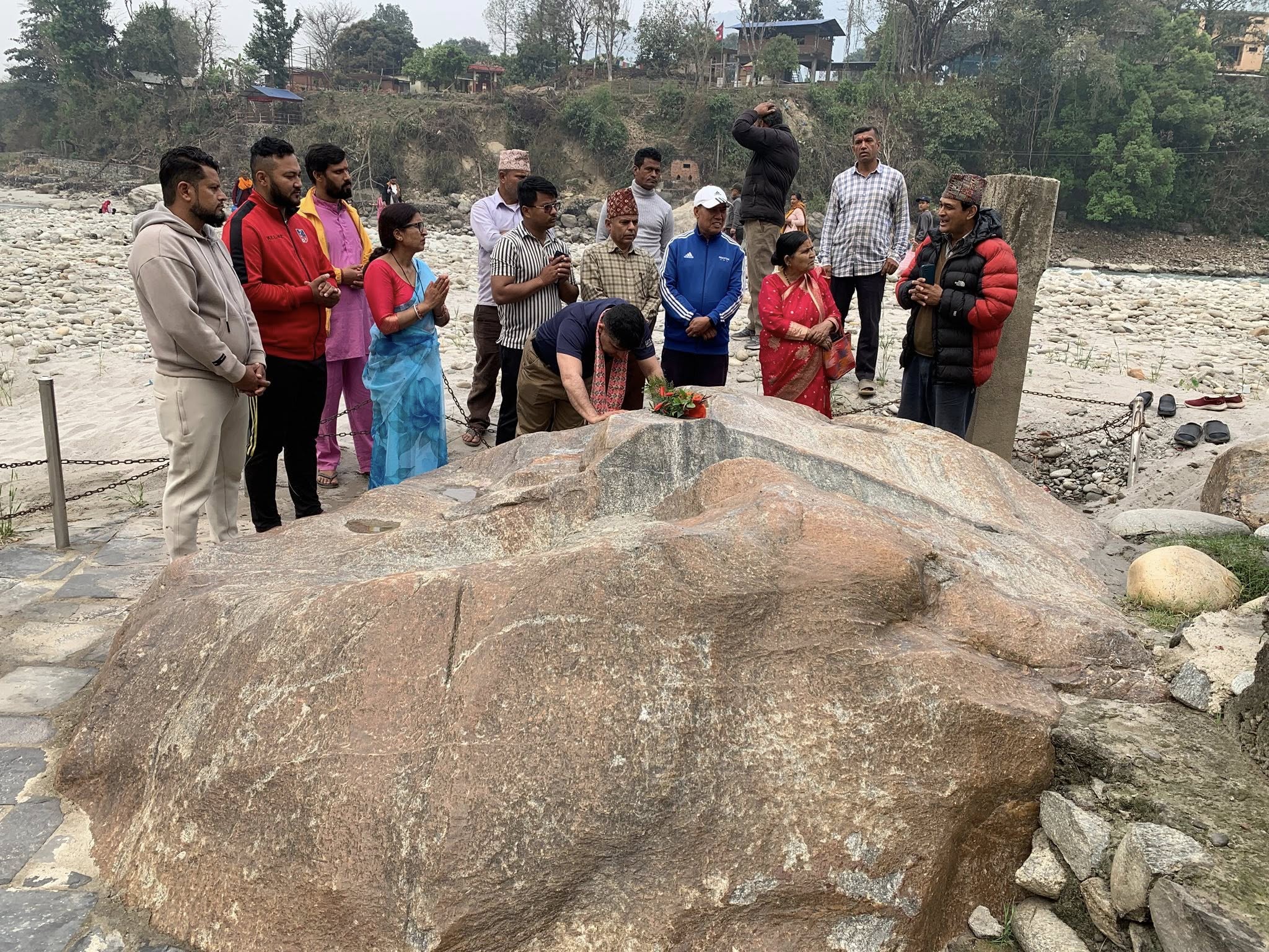 बिदुर नगरपालिका ५ देवीघाटस्थित त्रिशूली र तादी नदीको किनारामा रहेको पृथ्वी समाधिस्थलमा पुगेर सांसद लामिछानेले पृथ्वीनारायण शाहको योगदानको स्मरण गर्दै पुष्पगुच्छा अर्पण गर्दै समाधिस्थलमा आफ्नो शिर निहुराएर ढोगेका हुन् । उनले प्रसिद्ध जालपादेवी मन्दिर तथा आसपासका संरचनाहरुको विस्तार गरी धार्मिक पर्यटनलाई प्रवद्र्धन गरिनेसमेत वताए ।