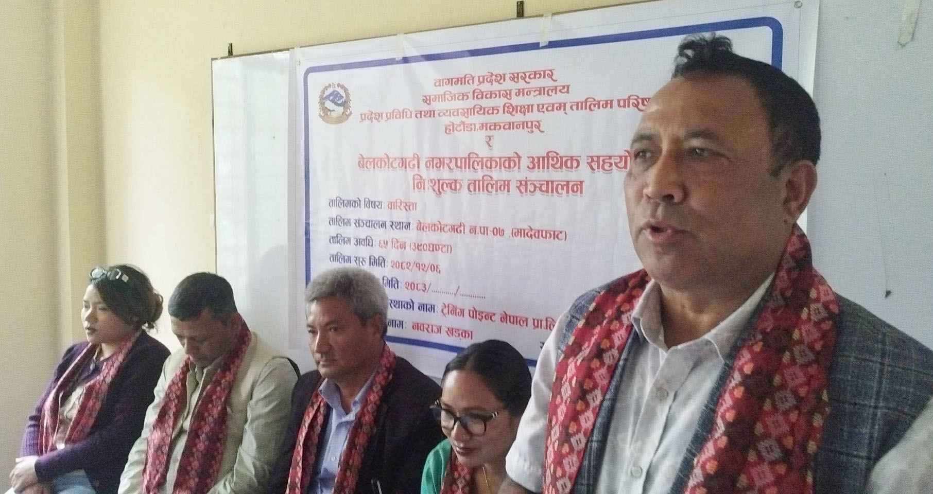 बिदुरः स्वरोजगार र आयआर्जनमा जोड दिदै नुवाकोटको बेलकोटगढी नगरपालिकामा सिपमुलक कार्यक्रम सन्चालन गरिएको छ । महादेवफांटमा सन्चालित तालिममा युवपा समुदायको उल्लेख्य सहभागिता रहेको छ । बेलकोटगढी नगरपालिका र बाग्मती प्रदेश सामाजिक बिकास मन्त्रालयको आर्थिक सहयोगमा निःशुल्क रुपमा उक्त प्रशिक्षण (कफि बारिष्टा सीप तालिमको) सुरुवात भएको हो ।