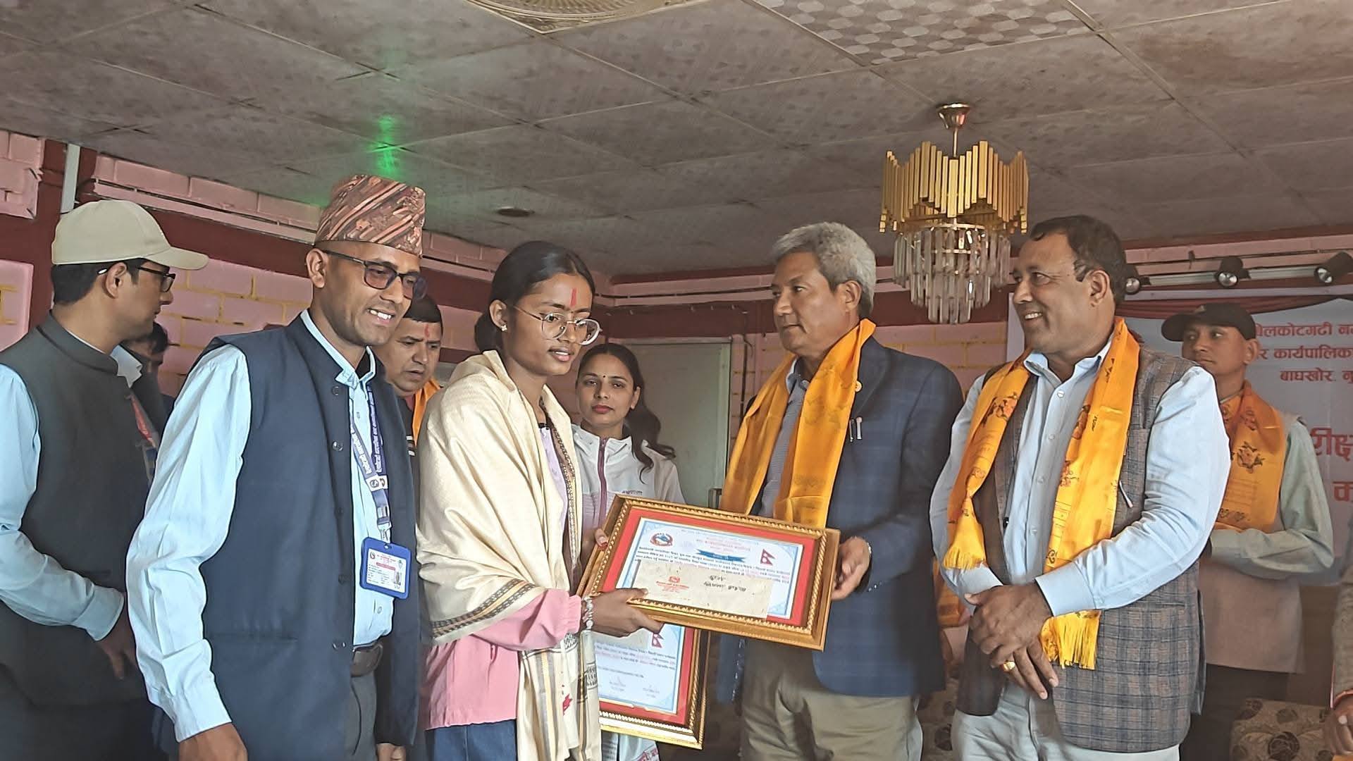 साथै उत्कृष्ट जीपीए हासिल गरेका ५ जना विद्यार्थीलाई पनि पुरस्कृत गरिएको छ । उत्कृष्ट नतिजा ल्याउने विद्यार्थीहरु सबै महादेव मावि रातमाटेका विद्यार्थीहरू रहेका छन् । पुरस्कृत भएकाहरुमा कविशा रिमाल (प्रथम), दिपास्ना दाहाल (द्वितिय), हरिशरण न्यौपाने (तृतीय), निर्देश नेपाल र कृतना लामिछाने (चौंर्थो)लाई सम्मान गरिएको हो । कार्यक्रममा मेयर जगतबहादुर गुरुङ र उपमेयर शिवप्रसाद दाहाललगायतले विद्यालय, विद्यार्थी तथा शिक्षकलाई सम्मान तथा पुरस्कृत गरेका हुन् ।
