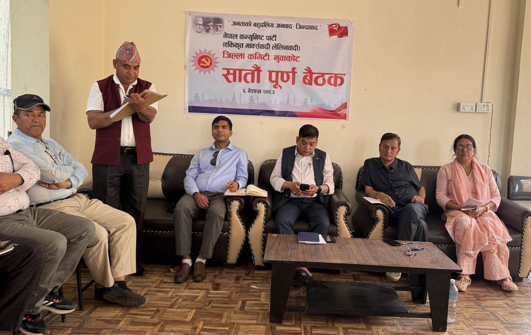 बिदुरः नेकपा (एमाले) नुवाकोटले गत भदौमा जेनजी आन्दोलनमा क्षतिग्रस्त भएको जिल्ला पार्टी कार्यालय पुर्ननिर्माणमा सहयोग संकलन गर्ने निणृय गरेको छ । जिल्ला कमिटीको सातौं पूर्ण बैठकले क्षतिग्रस्त विदुरस्थित पार्टी कार्यालय पुर्ननिर्माणमा नेताहरुसंग आर्थिक संकलन गरिने निर्णय गरेको हो । जिल्ला कमिटी अध्यक्ष बद्री मैनालीको अध्यक्षतामा सम्पन्न बैठकले गत भदौ २४ गते भएको जेनजी पुस्ताको आगजनीबाट क्षतिग्रस्त पार्टी कार्यालय पुनर्निर्माणका लागि जिल्ला कमिटी सदस्यबाट न्यूनतम ५ हजार रुपैयाँ र प्रदेश कमिटी सदस्यबाट कम्तीमा १० हजार रुपैयाँ आर्थिक सहयोग गर्ने निर्णय गरेको छ ।